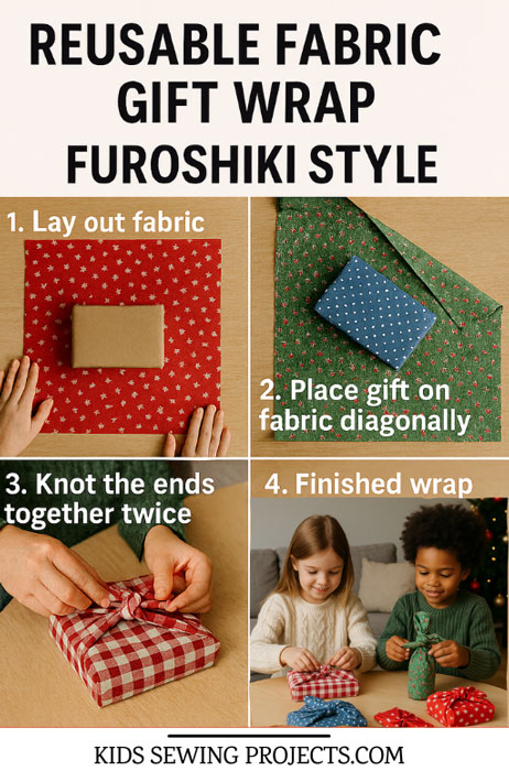 Furoshiki is a traditional Japanese method of wrapping gifts using fabric instead of paper. It’s beautiful, reusable, and environmentally friendly — plus, it’s a wonderful way for kids to add a handmade touch to their presents.
